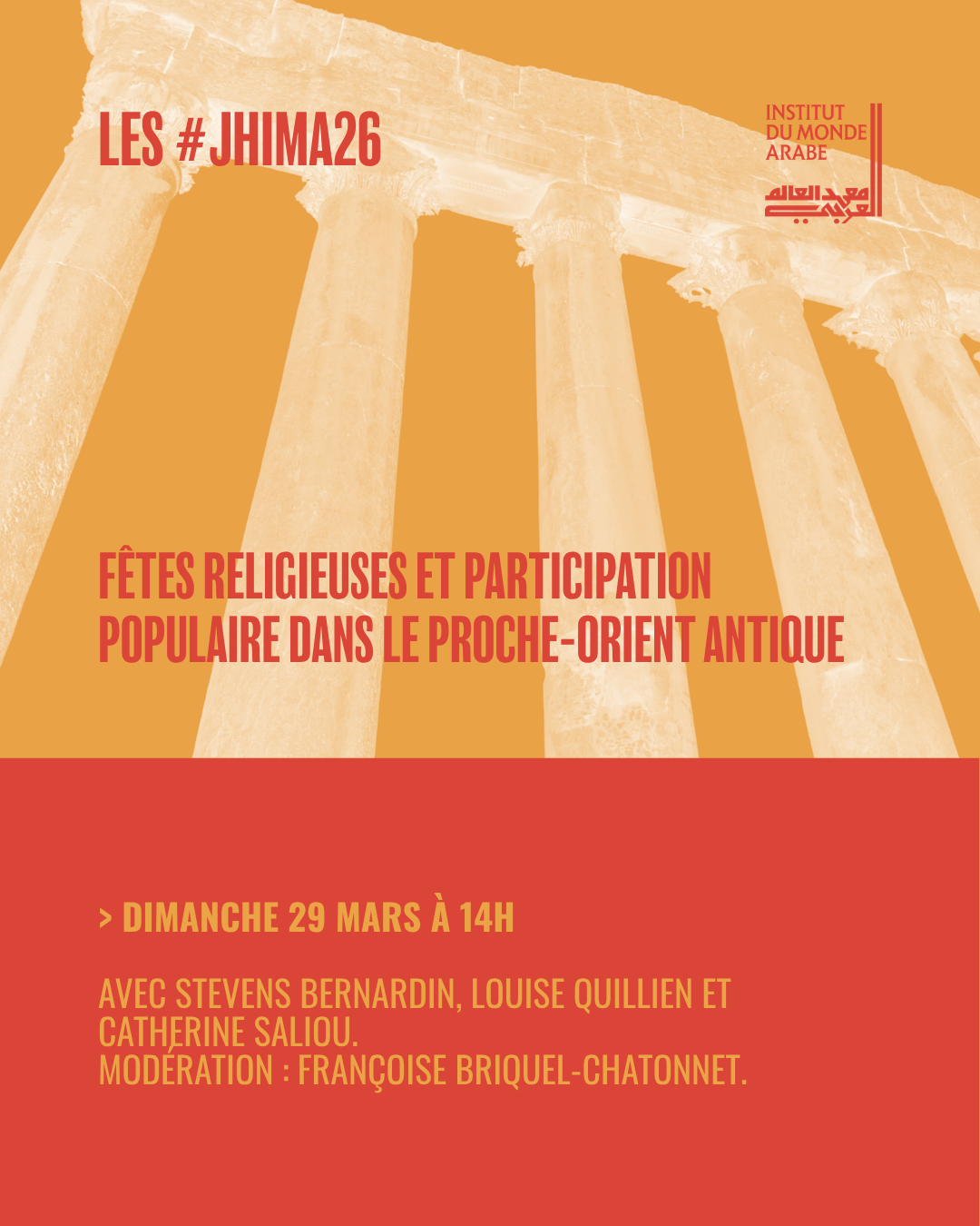 Une table ronde sur le thème “Fêtes religieuses et participation populaire dans le Proche-Orient antique” aura lieu le dimanche 29 mars à 14h à l’Institut du Monde Arabe de Paris.