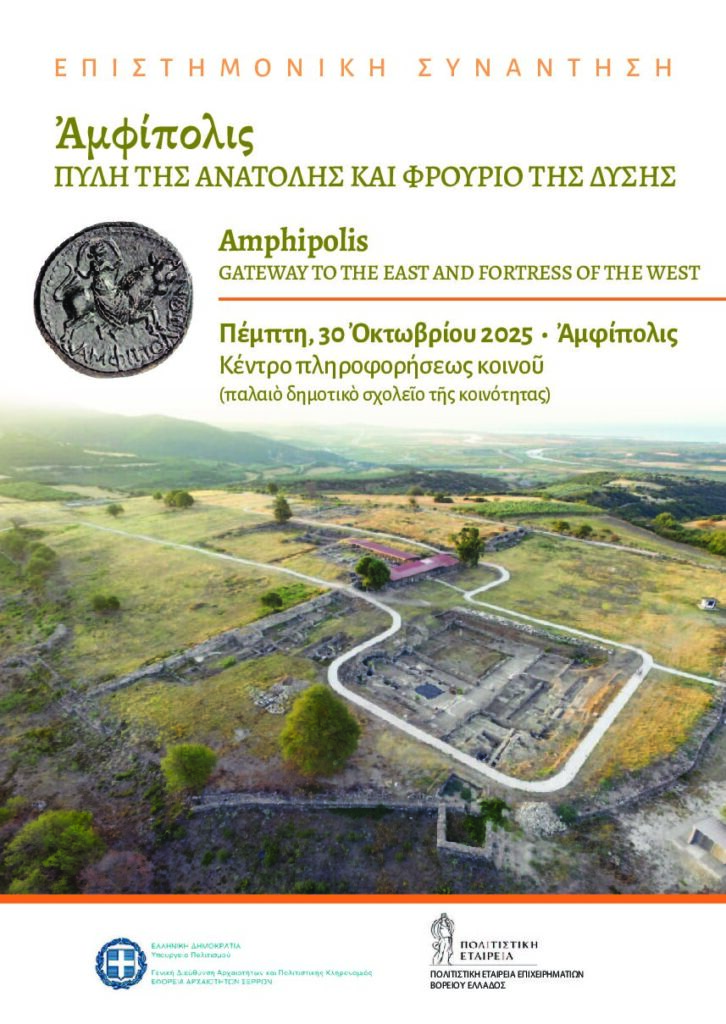 Πέμπτη, 30 Ὀκτωβρίου 2025 • ἈμφίπολιςΚέντροπληροφορήσεως κοινοῦ(παλαιὸ δημοτικὸ σχολεῖο τῆς κοινότητας) AmphipolisGATEWAY TO THE EAST AND FORTRESS OF THE WEST Thursday, October 30, 2025 • AmphipolisCommunity Information Center(former community elementary school) Archéologie des mondes grecs