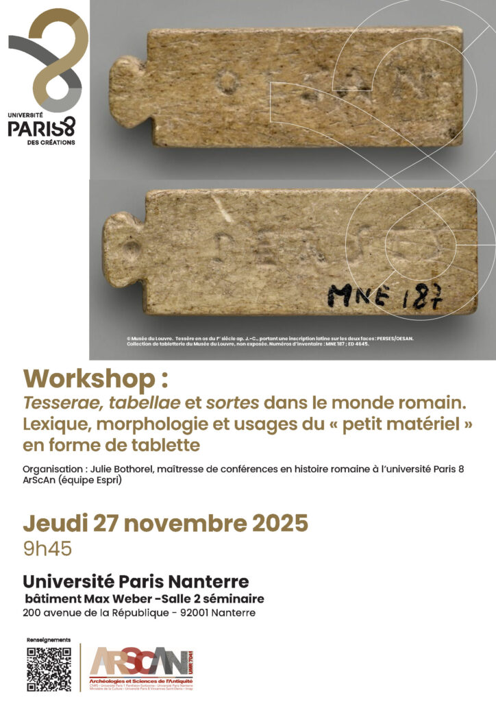 Workshop : Tesserae, tabellae et sortes dans le monde romain. Lexique, morphologie et usages du « petit matériel » en forme de tablette.